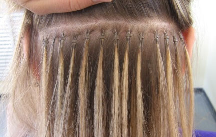 специальной петелькой прядка своих волос продевается через кольцо и зажимается в прекорневой зоне специальными щипцами. Такие крепления окрашены в самые разные оттенки, соответствующие цветовой палитре человеческих волос.
